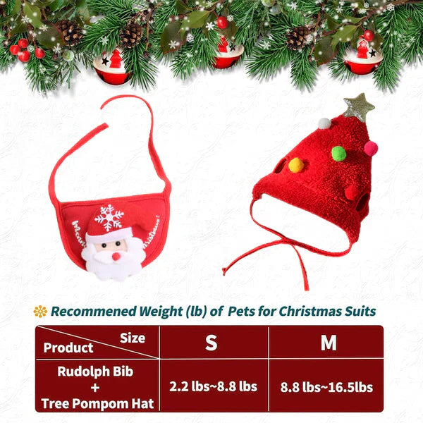 Transform your pet into a Christmas icon with this cute Tree Pom-Pom Hat and Rudolph Reindeer Bib set. Perfect for holiday photos, family gatherings, and parties, making your pet the ultimate festive star!