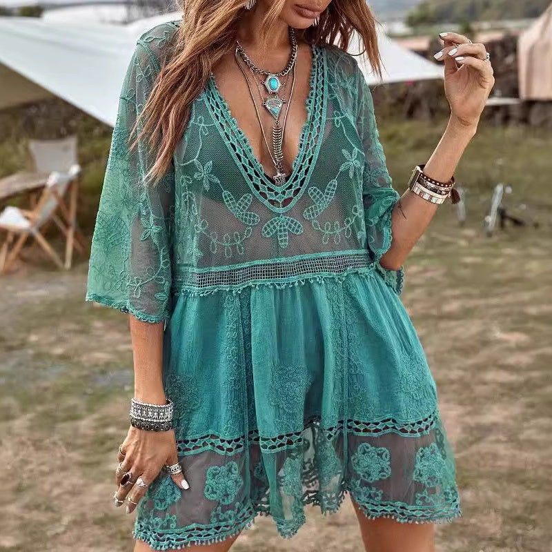 SEXY DESIGN: This cover-up features a deep V-neckline and a loose, flowing silhouette that accentuates your curves while providing a touch of allure. Perfect for poolside lounging or beach outings.