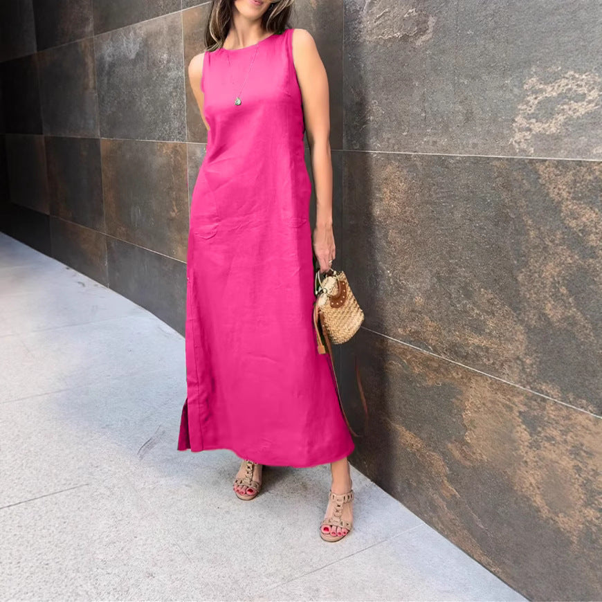 1 * Women's Solid Color Button Side Split Sleeveless Dress