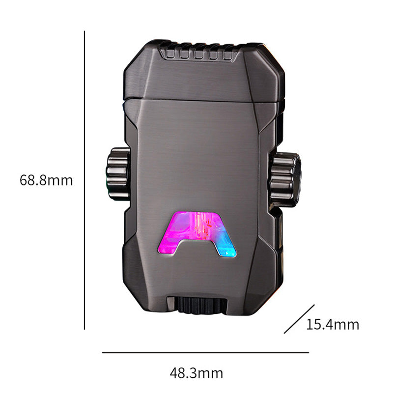 The Cool Decompression Gyro Double Straight Punch Lighter is a unique and innovative gift that combines functionality with style. This futuristic-looking lighter is designed for those who appreciate cutting-edge technology and a touch of elegance in their everyday accessories. Its powerful double direct-flush flame ensures a fast and efficient ignition, making it a reliable choice for lighting candles, stovetops, or anything else that requires a flame. Crafted from high-quality zinc alloy, this lighter is built to withstand the rigors of daily use while maintaining its striking appearance.