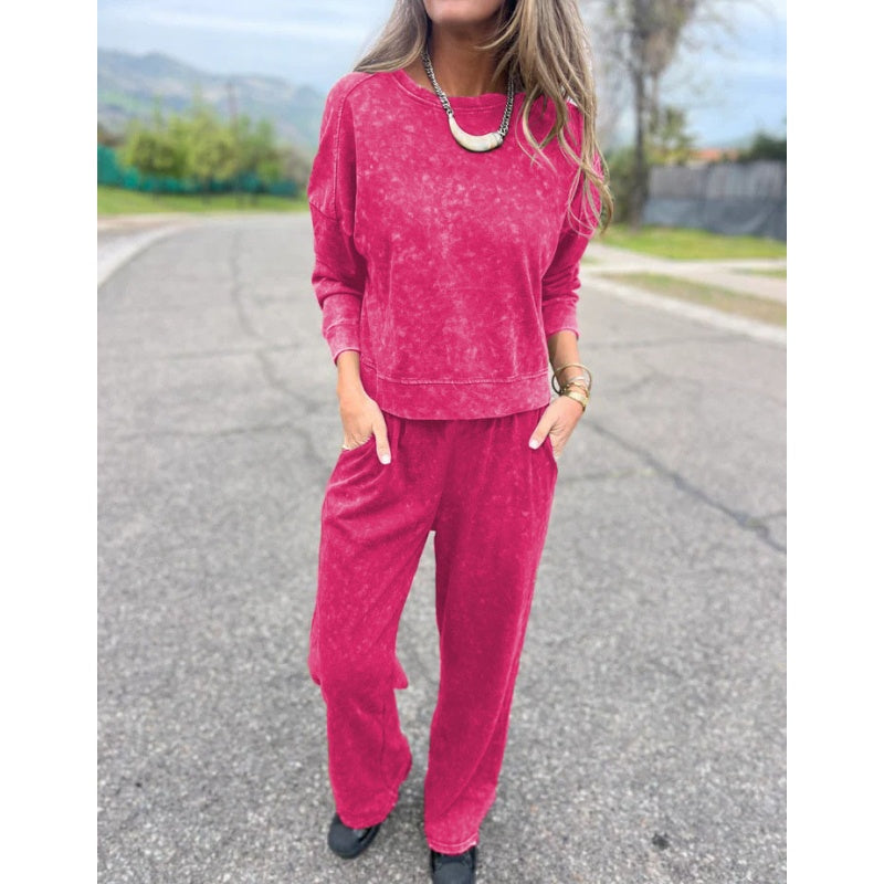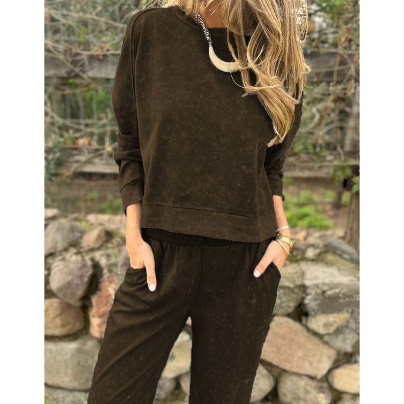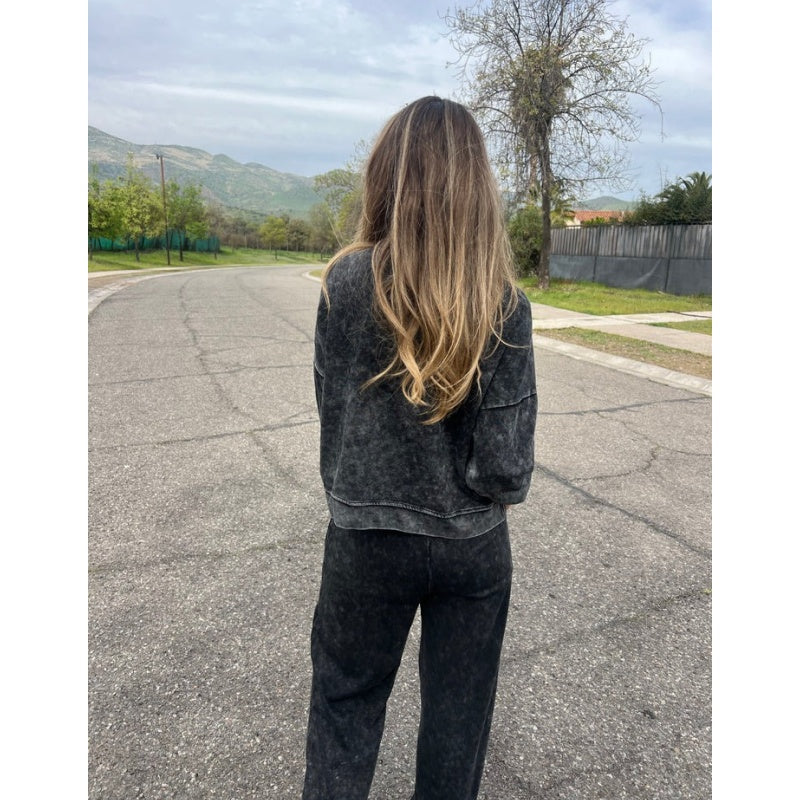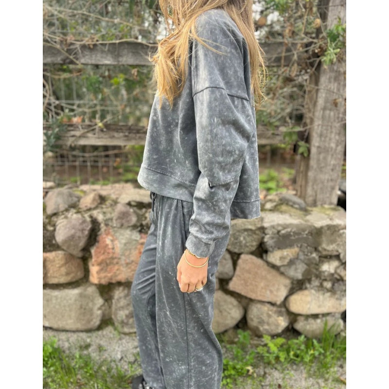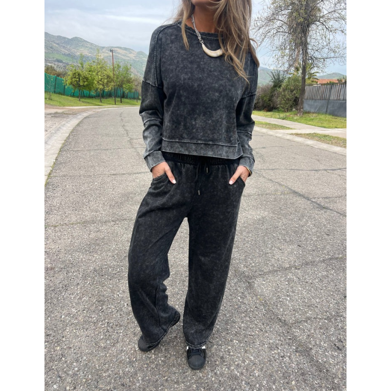 Vintage Washed Pullover Cropped Hoodie & Pants Set
