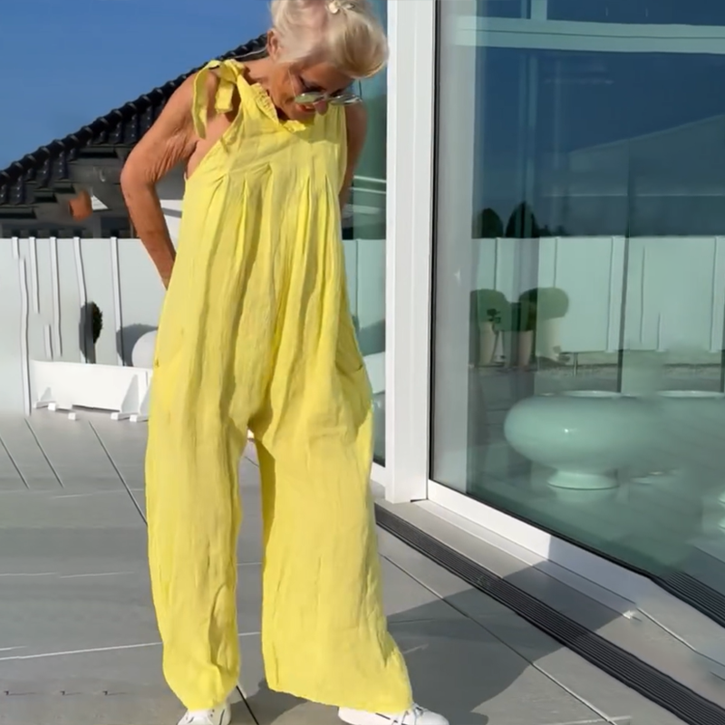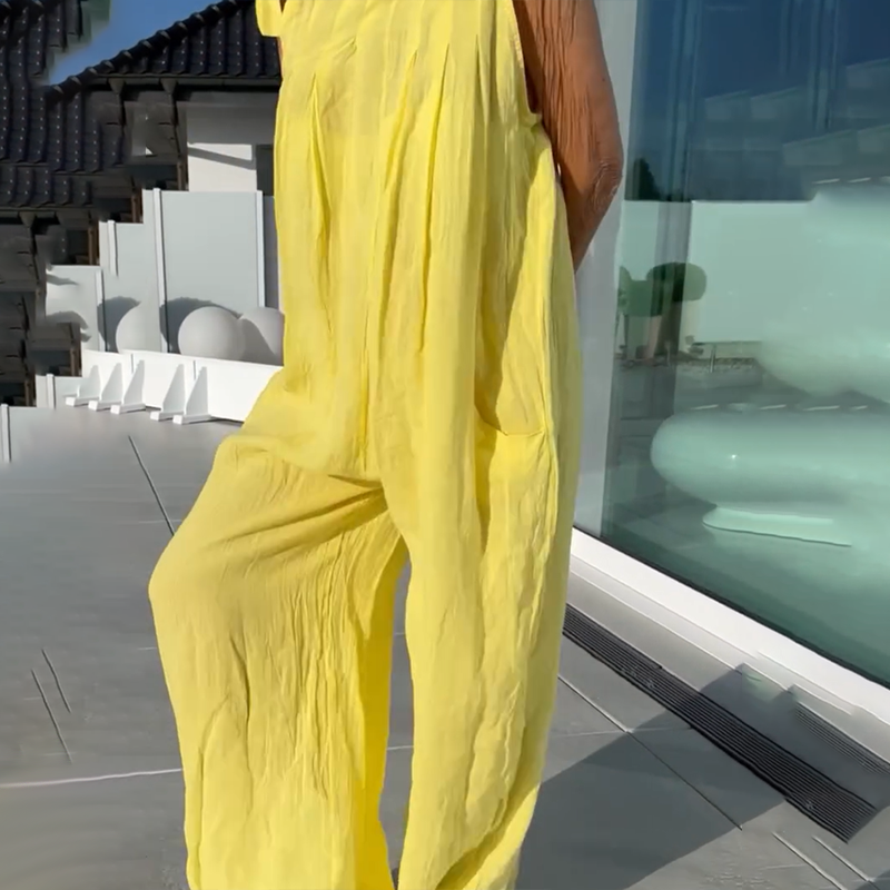 BREATHE-EASY COMFORT – Crafted from a premium blended fabric, this jumpsuit ensures all-day comfort with its lightweight, breathable material. The loose, wide-leg design allows for unrestricted movement, making it ideal for both casual outings and active days.
