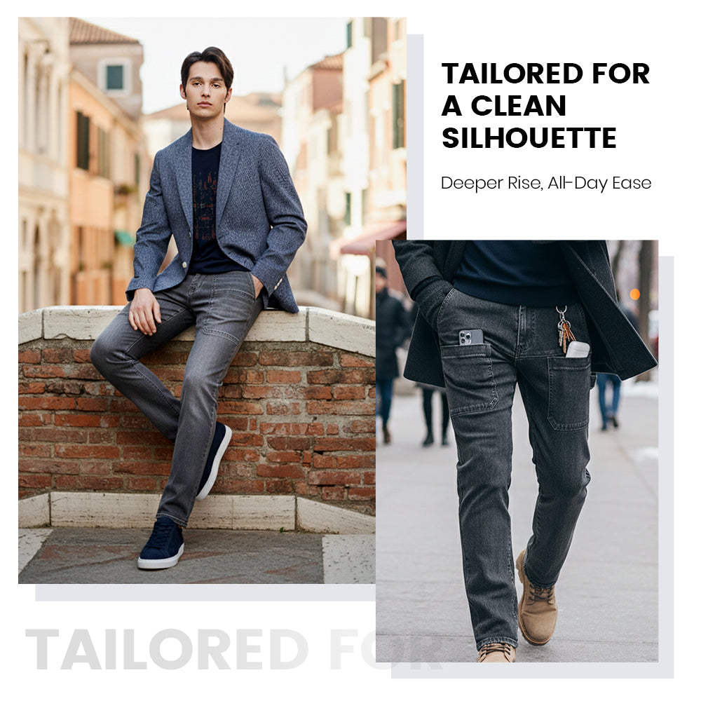🔥50% OFF👖Men’s Slim Fit 6-Pocket Jeans+Belt