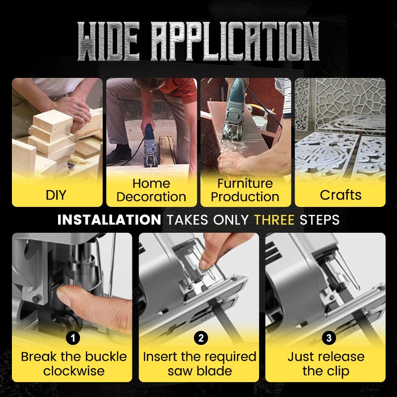 Compatible with most jigsaws including BOSCH, DEWALT, HITACHI, AEG, ELU, MAKITA, FESTOOL, METABO, SKIL, ATLAS COPCO, etc.