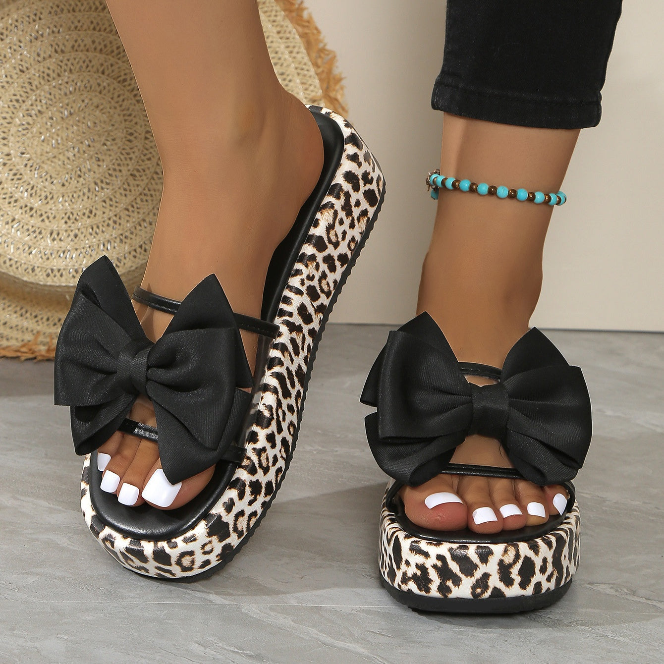 Package Includes: 1×Leopard Print Bow Thick Sole Slippers