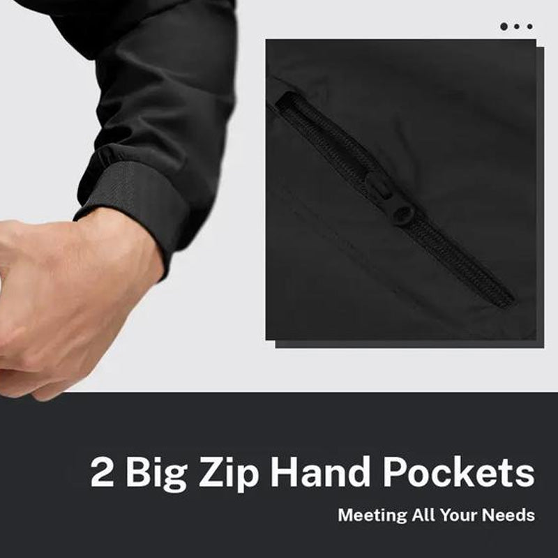 FUNCTIONAL POCKET: A dedicated zippered pocket on the left sleeve offers secure storage for small essentials like keys or earbuds. This detail blends practicality with bold design, breaking the monotony of solid colors and adding a utilitarian flair that elevates everyday wear.