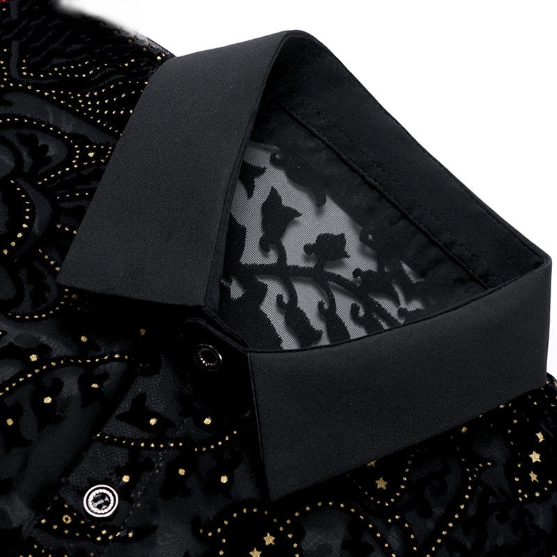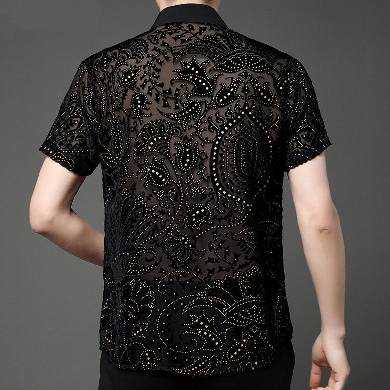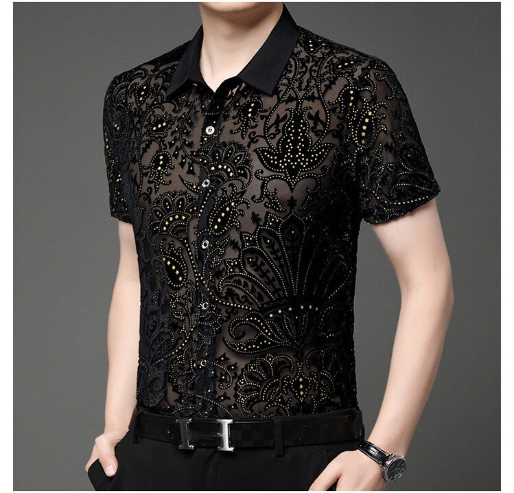 Men's Sparkly Sheer Short-Sleeve Dance Shirt