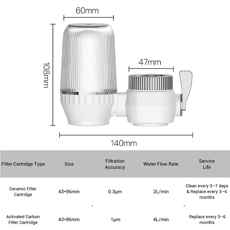 PHYSICAL FILTRATION, NO ELECTRICITY REQUIRED – Utilizes pure physical filtration technology with no need for power or complex installation. Energy-efficient, eco-friendly, and safe to use, providing clean water anytime, anywhere, conveniently and cost-effectively.