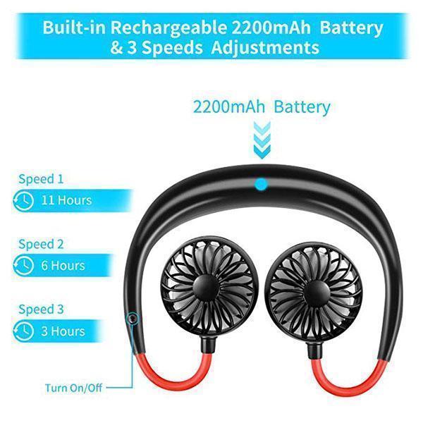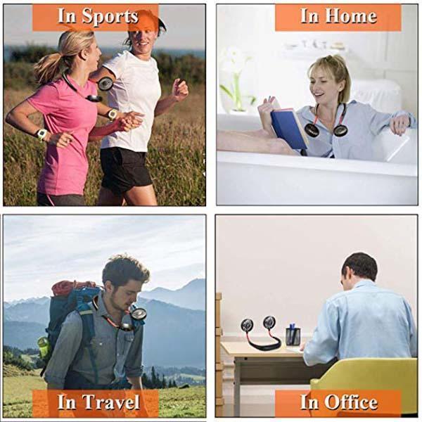 Lightweight and small personal cooling fan, easy to carry and store, hanging design, truly hands-free neckband fan can be perfectly suitable for outdoor sports, indoor exercises, offices, gym, even you are running, traveling and camping.