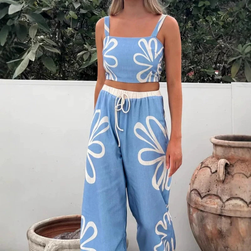 Printed Sleeveless Top & Wide-Leg Pants Set