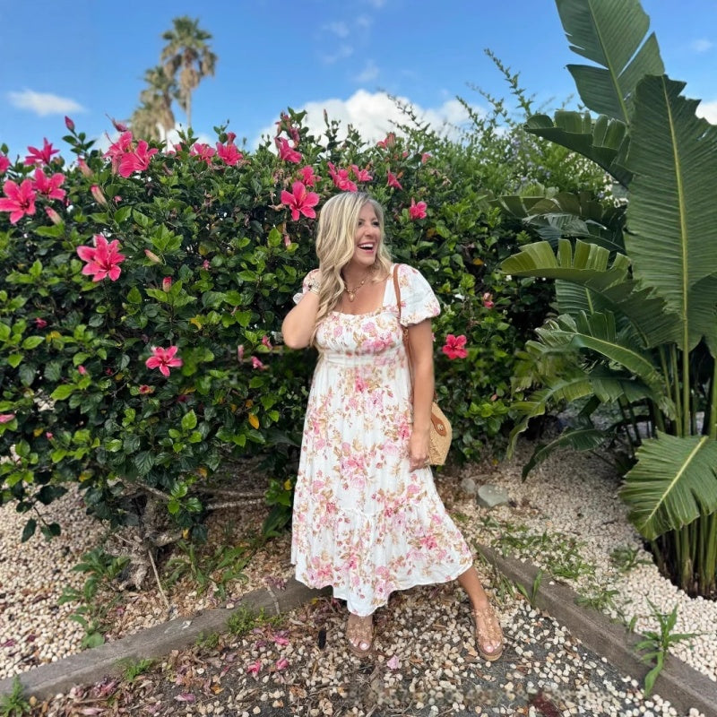EFFORTLESS STYLE VERSATILITY: With its classic square neckline and flowing silhouette, this dress is a true style chameleon. It can be dressed up or down with ease. For a casual look, pair it with sneakers and a denim jacket for a day out. The timeless floral print ensures it won't go out of style anytime soon, making it a versatile addition to your wardrobe that can be worn for various occasions, from a picnic in the park to a dinner date.