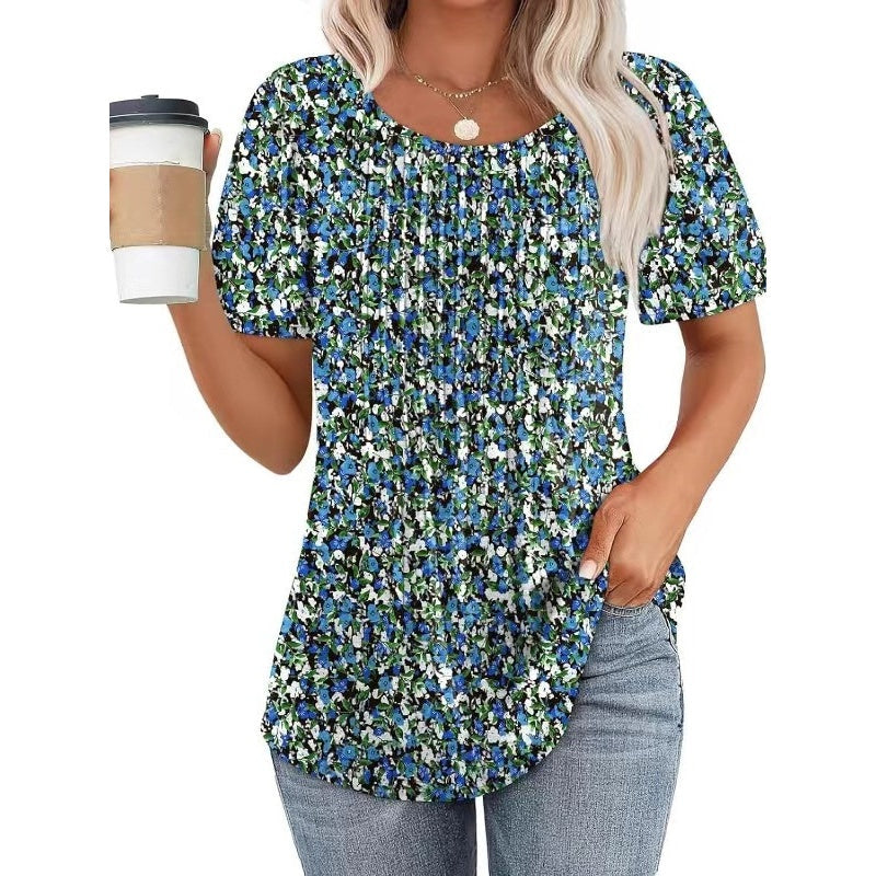 Package Includes:1*Round Neck Pleated Short Sleeve Printed T-Shirt
