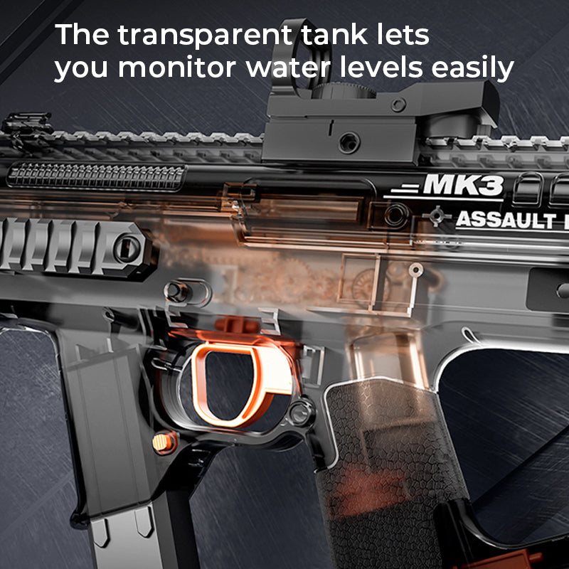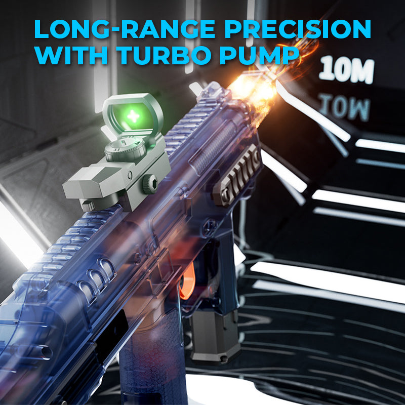 HIGH-GRADE TARGETING WITH GREEN DOT SIGHT: Military-inspired precision! The optical green dot sight and adjustable weighted stock ensure accurate aiming, giving you the edge in water battles.