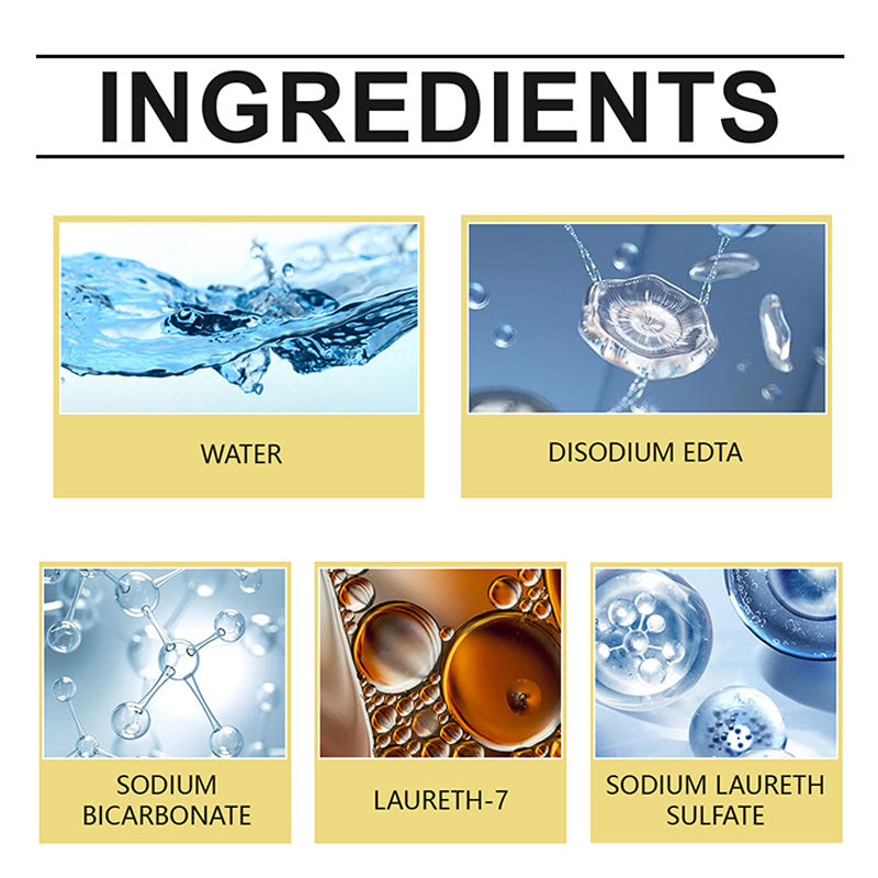 Ingredients: water, edta disodium, sodium bicarbonate, etc.