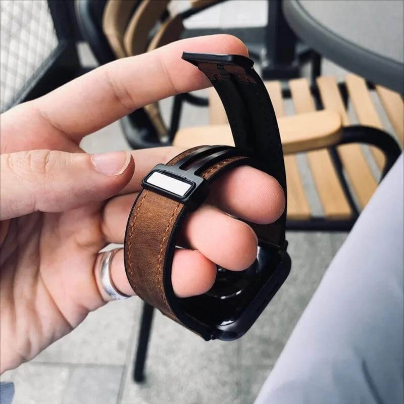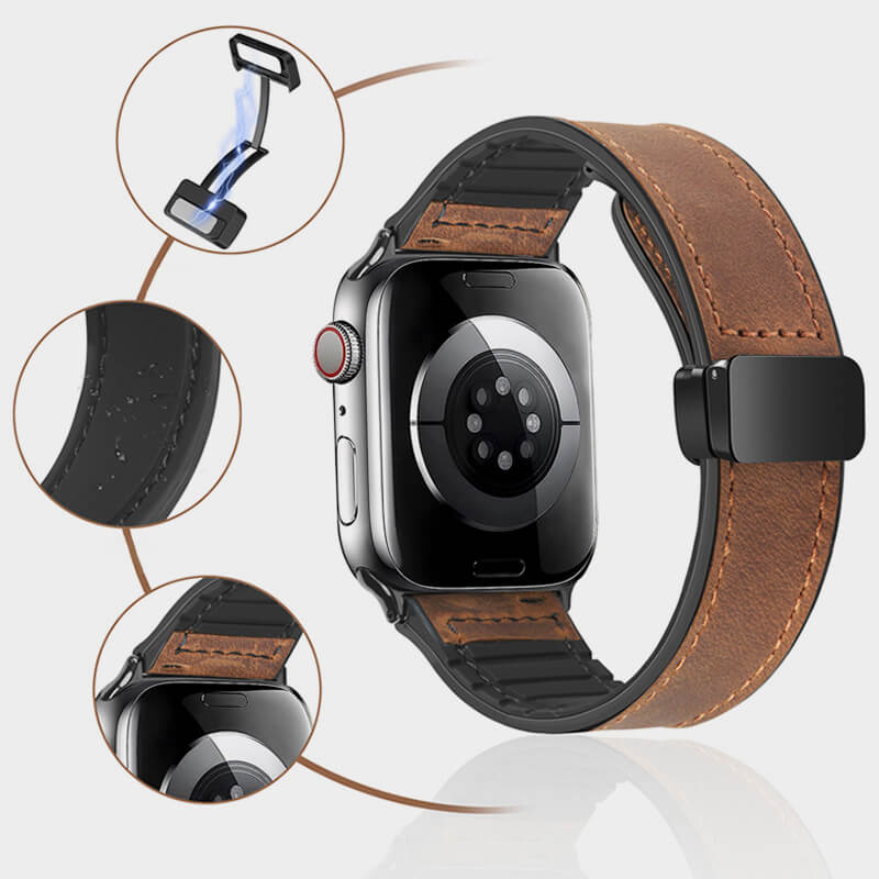 Build in multiple powerful magnet, and made of durable & soft leather and silicone, No marks left on the leather surface after scratches,simple but attractive, look fantastic and giving a nice professional look on any occasion; Soft pliable leather silicone material provides comfortable and gentle feeling for your wrist, odorless and environment friendly, it is a good choice for watch accessories.
