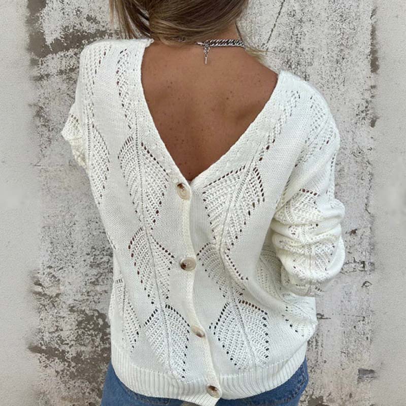 Reversible Hollow Pattern V-Neck Sweater