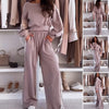 Package Include: 1* Round-Neck Top and Wide-Leg Pants 2-Piece Set