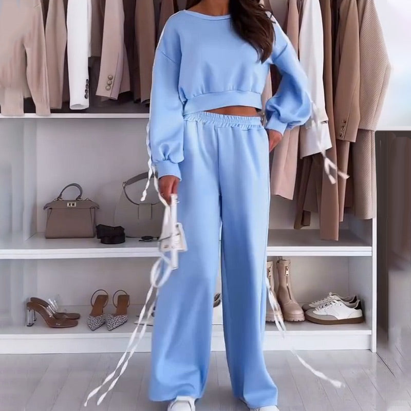 FLOWING RIBBONS DETAILS: The top and pants are designed with elegant flowing ribbons, adding a touch of femininity and movement to your outfit. This unique detail enhances the set’s stylish appeal.