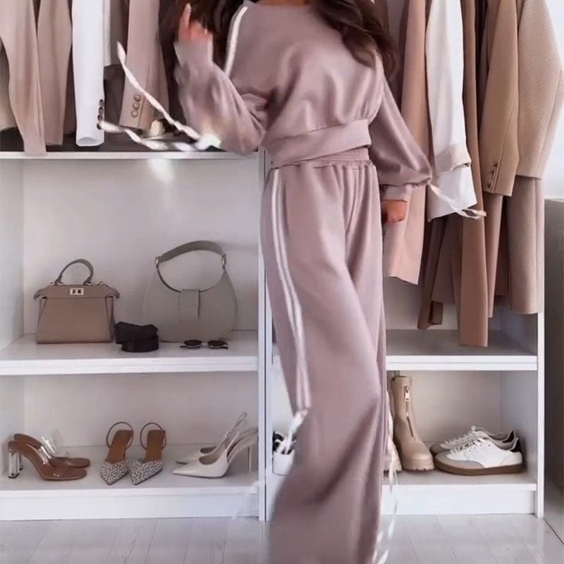 Round-Neck Top & Wide-Leg Pants 2-Piece Set