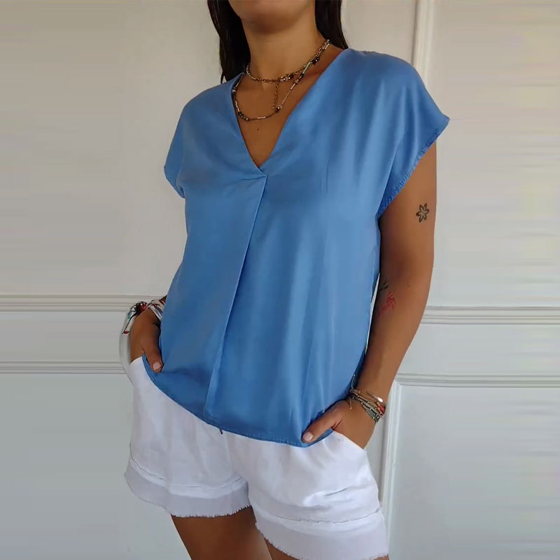 Women’s Solid Color V-Neck Dolman Sleeve Top