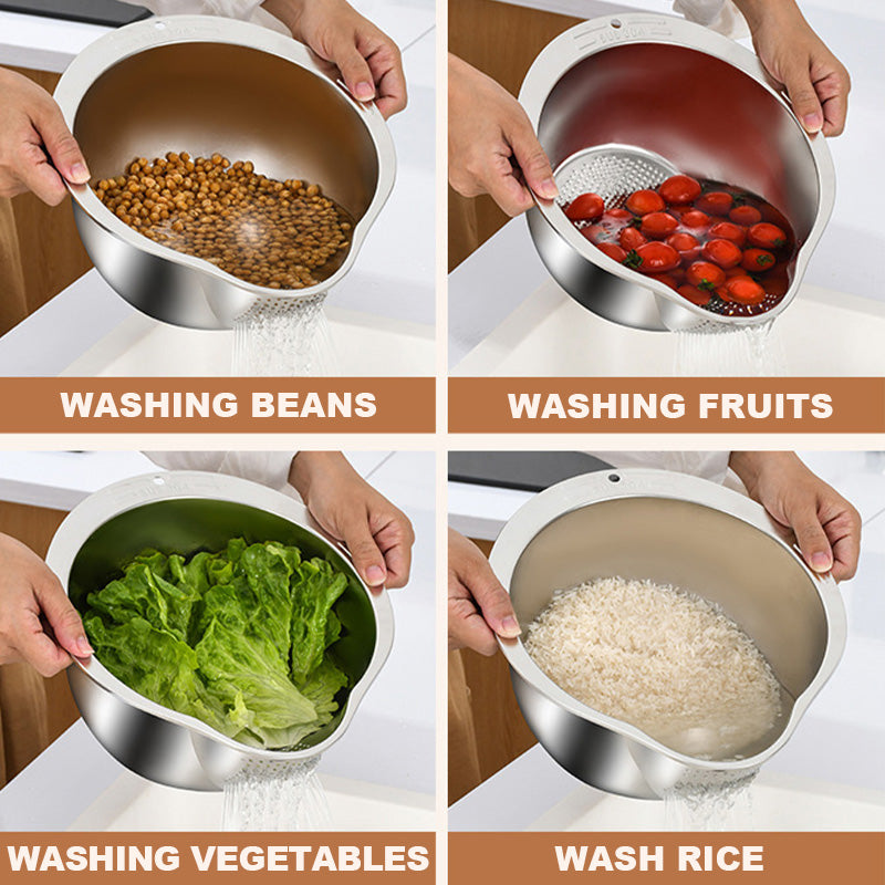 Stainless Steel Rice Strainer Bowl - Effortless Rice Washing and Draining