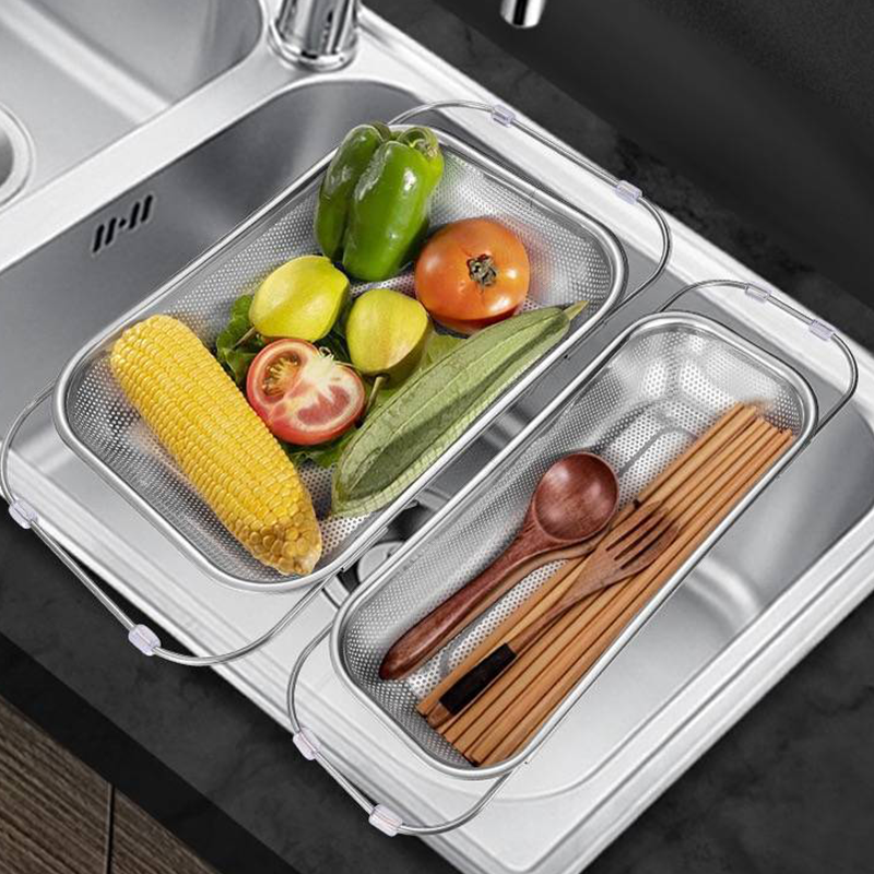 MULTI-FUNCTIONAL DRAINING & STORAGE: Fine perforated mesh allows rapid water drainage while securely holding small items like chopsticks, cutlery, or delicate produce. Doubles as a storage tray for fruits, vegetables, or dishes, enabling versatile use beyond basic draining tasks.