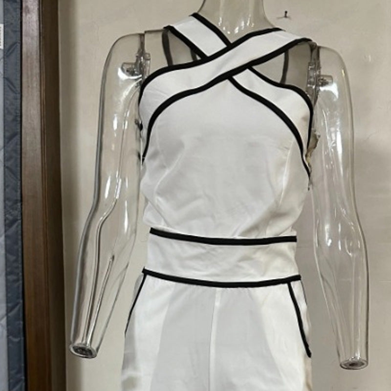 Package Included: 1*Stylish Cross Neck Top & Wide Leg Pants Two Piece Set