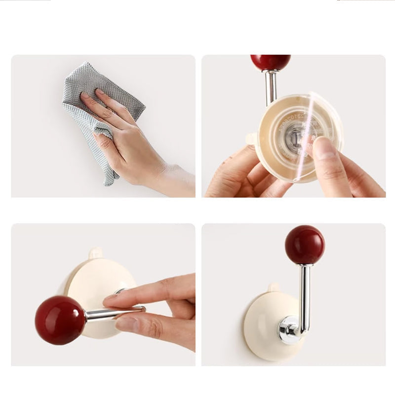PRACTICAL SUCTION CUP – This knob features a strong suction cup that adheres securely to smooth, dry surfaces, including cabinets, drawers, sliding doors, refrigerators, and mirrored glass. It provides a reliable grip without the need for screws or drilling, ensuring your hooks remain in place while supporting everyday household items.