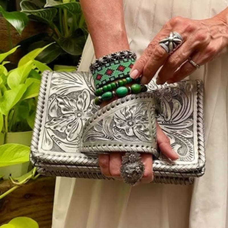 ELEGANT VINTAGE DESIGN - The Vintage Elegant Embossed Clutch features a retro-inspired embossed pattern, adding vintage charm to your style. Its intricate design makes it a standout accessory, perfect for enhancing any outfit at formal or casual events.