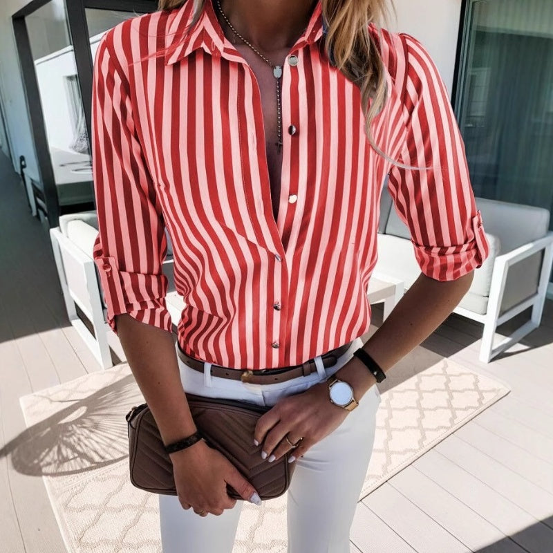 1 * Women's Casual Vertical Striped Shirt