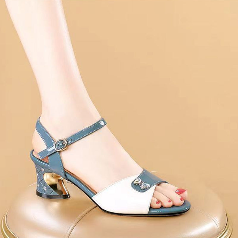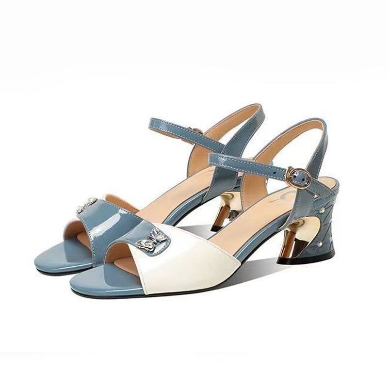 DECORATIVE EMBELLISHMENTS: Adorned with decorative elements like rhinestones, enhancing the fashionable appeal of the sandal.