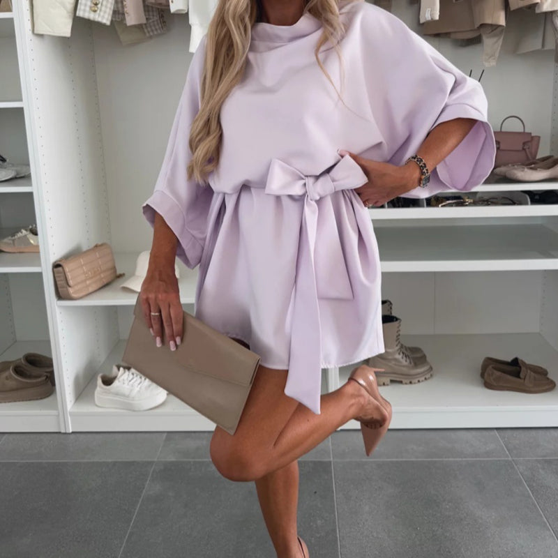 OVERSIZED COMFORT - Crafted with relaxed dolman sleeves and a flowing silhouette, this dress balances effortless elegance with modern sophistication. The loose fit accommodates diverse body types while maintaining a fitting look, making it ideal for both casual outings and semi-formal events.