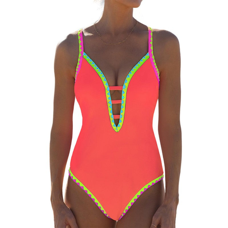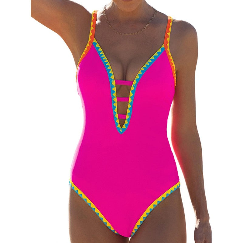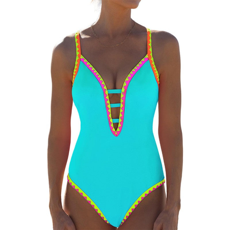 Women's Glamour Colorful Spaghetti Strap One-Piece Swimsuit