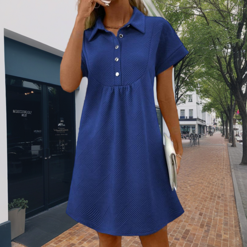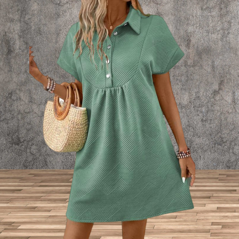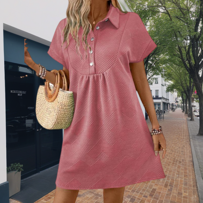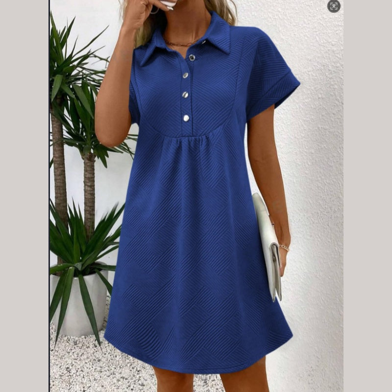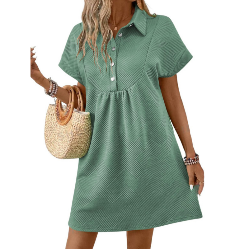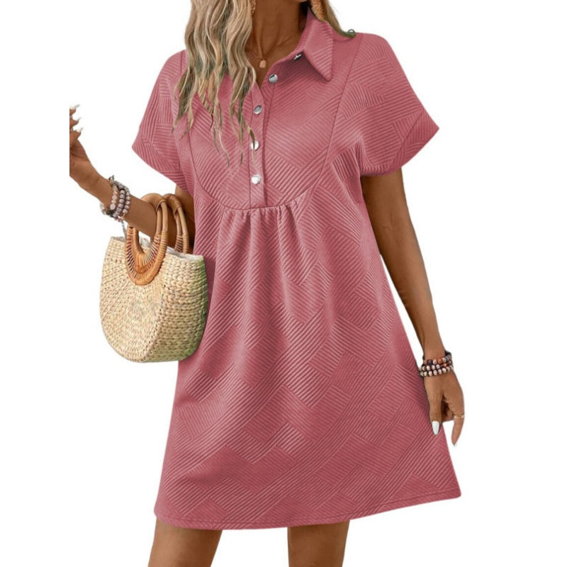 Women's Unique Geometric Texture Short Sleeve Lapel Dress