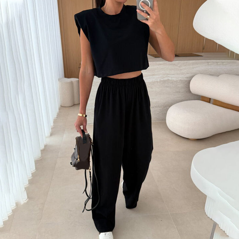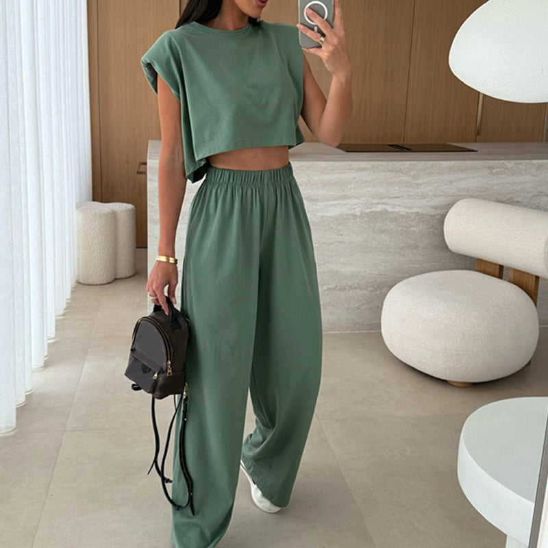 Package Includes: 1* Women's Casual Cropped Top & Full-Length Pants Set