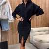 Package Includes: 1 * Women's Casual Half Zip Tops & Slit Skirt 2-Piece Set