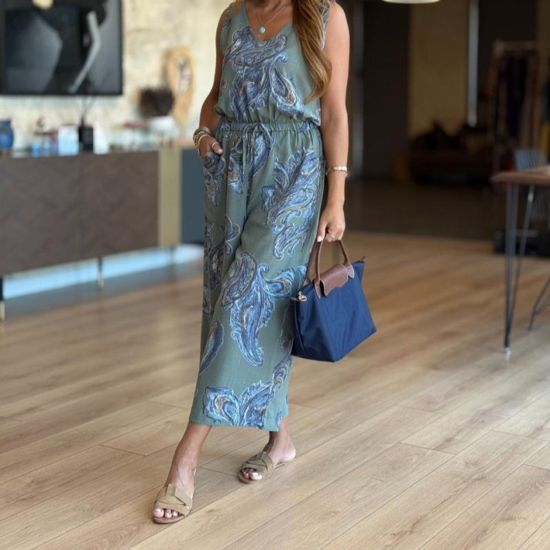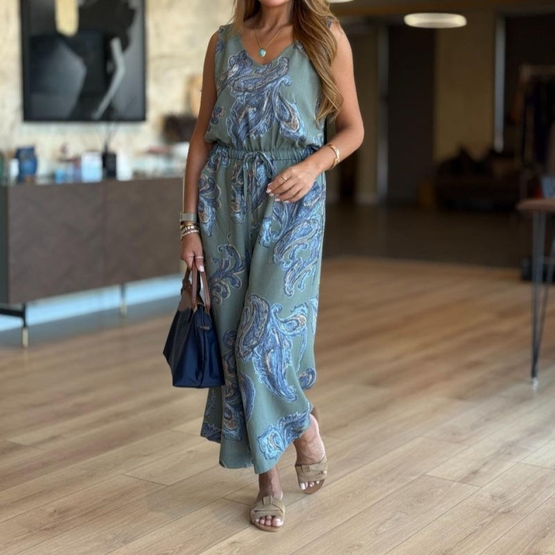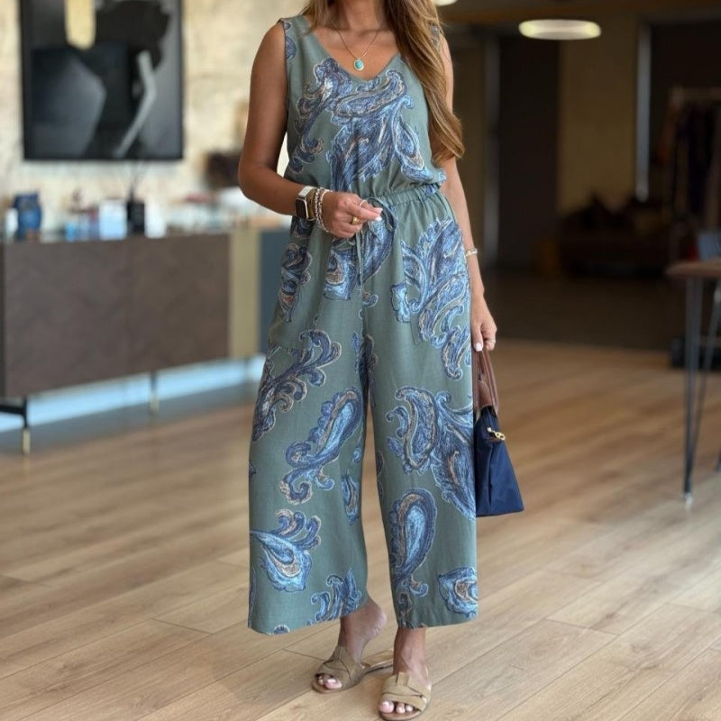 Package Includes:1*Women's Casual Sleeveless Printed Jumpsuit