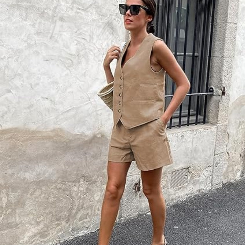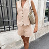 Women’s Casual Sleeveless V-Neck Top & Shorts Two-Piece Set