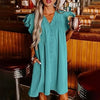Women's Casual V-Neck Ruffle Pleated Dress