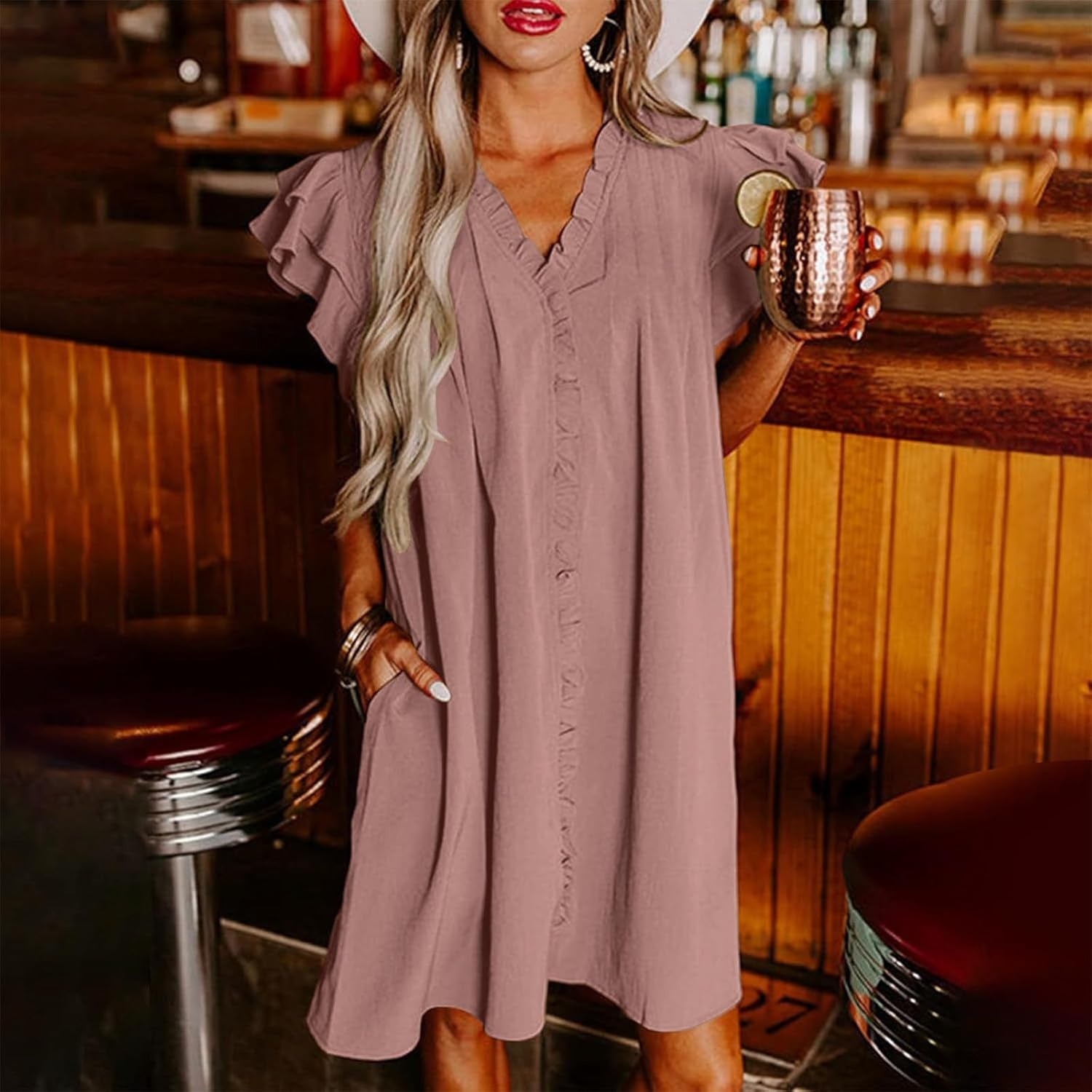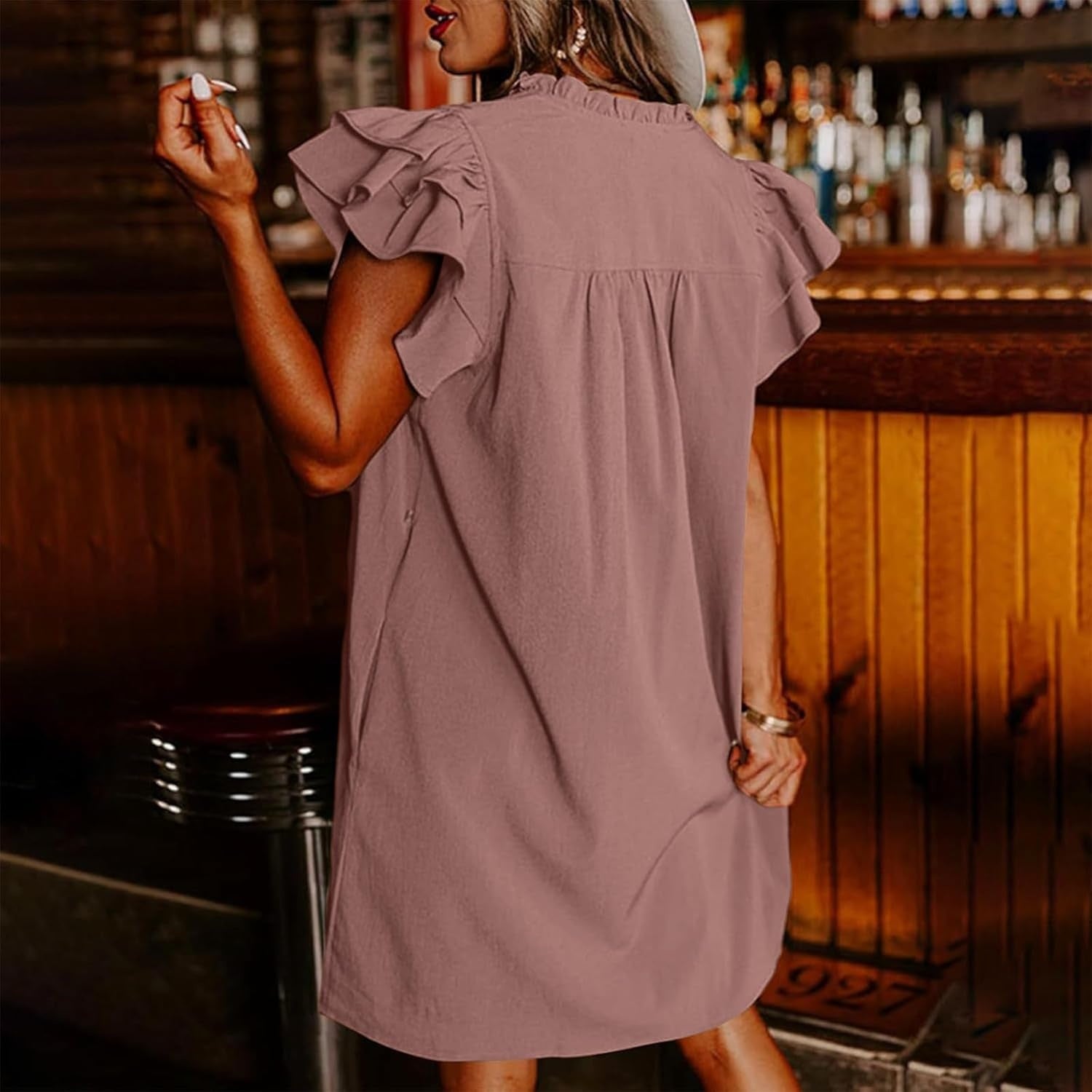 DELICATE RUFFLE ACCENTS: Subtle ruffles adorn this dress with romantic charm, creating eye-catching movement with every step while maintaining an effortlessly elegant aesthetic for day-to-night wear.