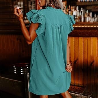 Package Include: 1* Women's Casual V-Neck Ruffle Pleated Dress