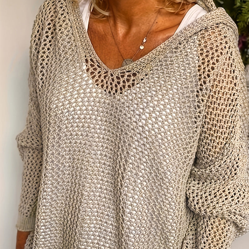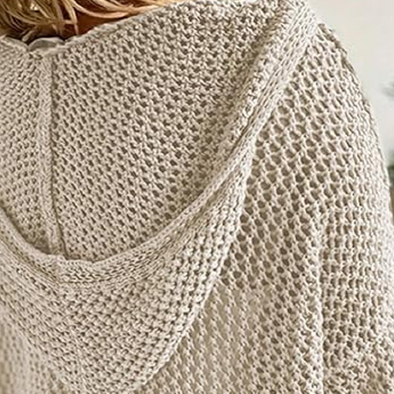 STYLISH CROCHET DESIGN: Features a delicate hollow out crochet pattern with a chic hooded V-neck, creating a fashionable layered look that truly stands out effortlessly.