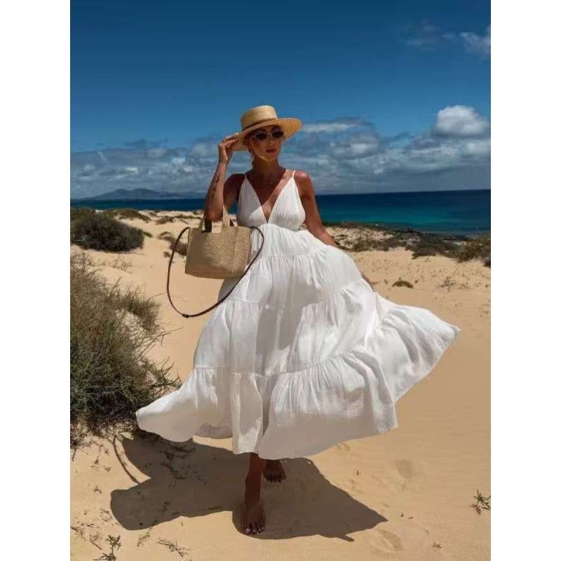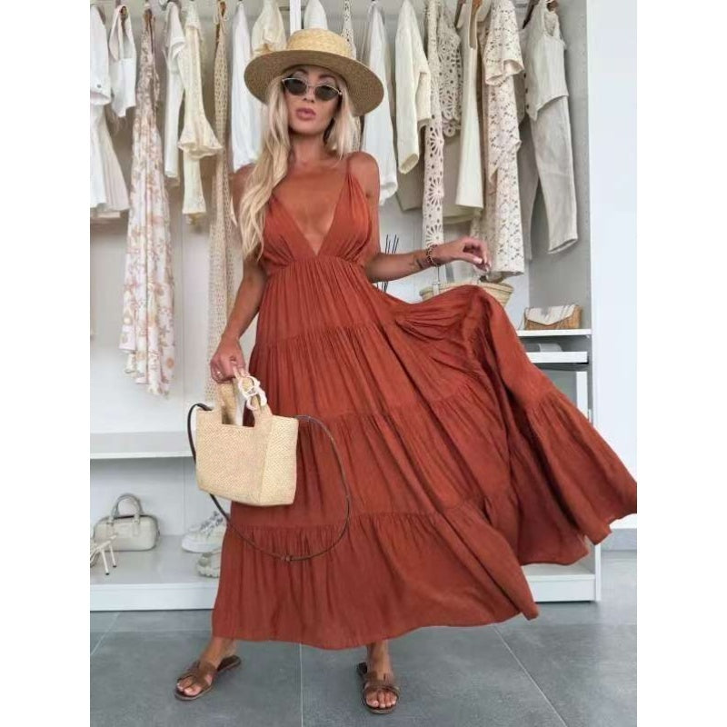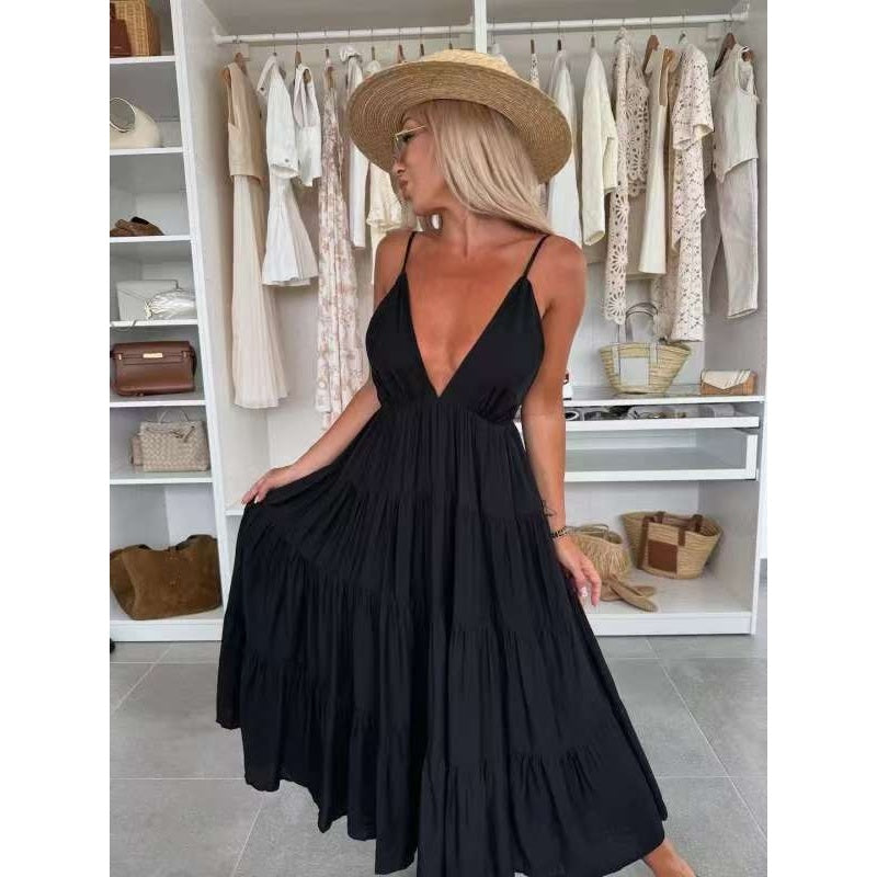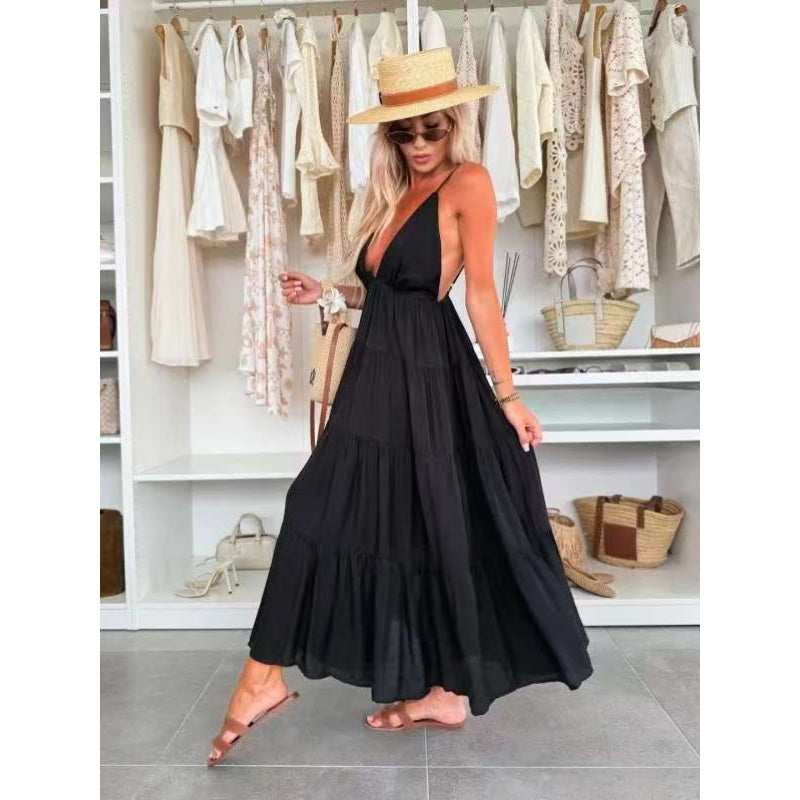 Women's Deep V-Neck Backless Maxi Dress