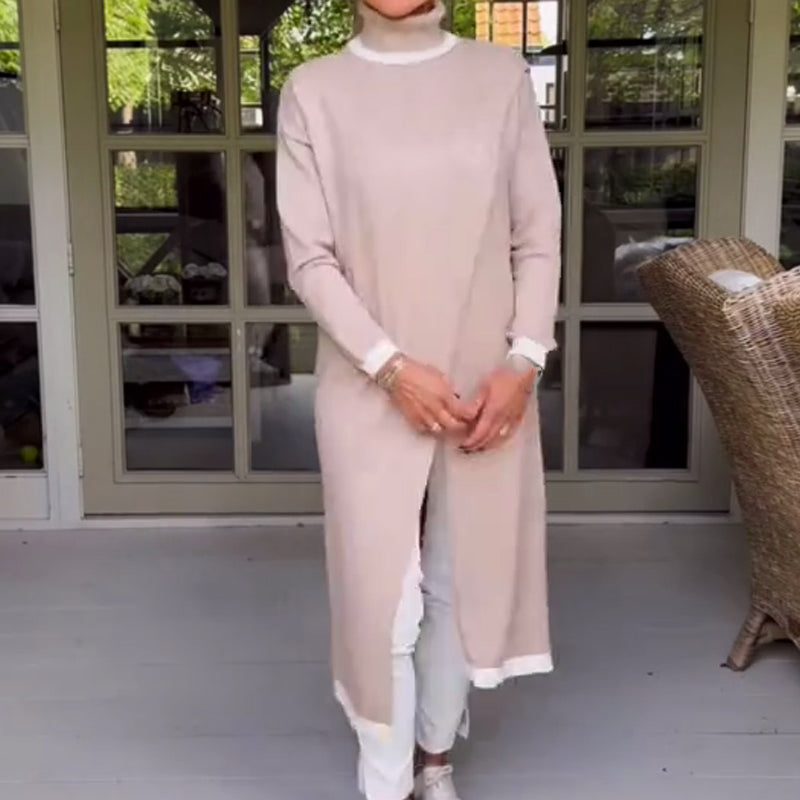 HIGH SLIT MAXI STYLE: Featuring a graceful maxi length with a dramatic high slit, this sweater dress strikes the perfect balance between elegance and allure. The flowing silhouette elongates your figure while the slit adds effortless movement and feminine charm.