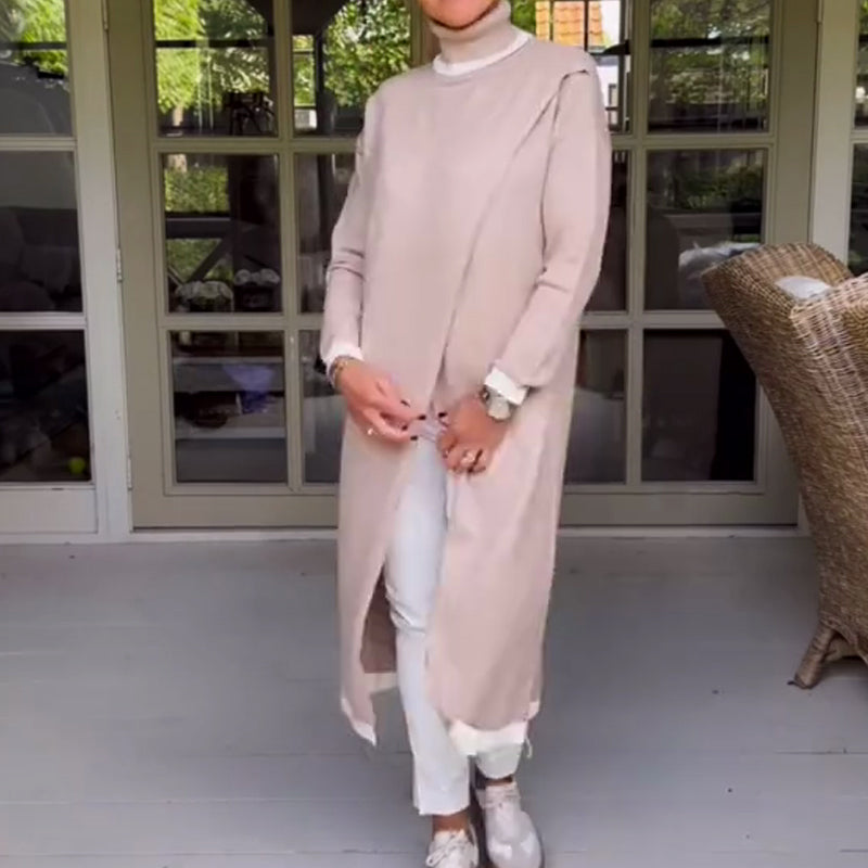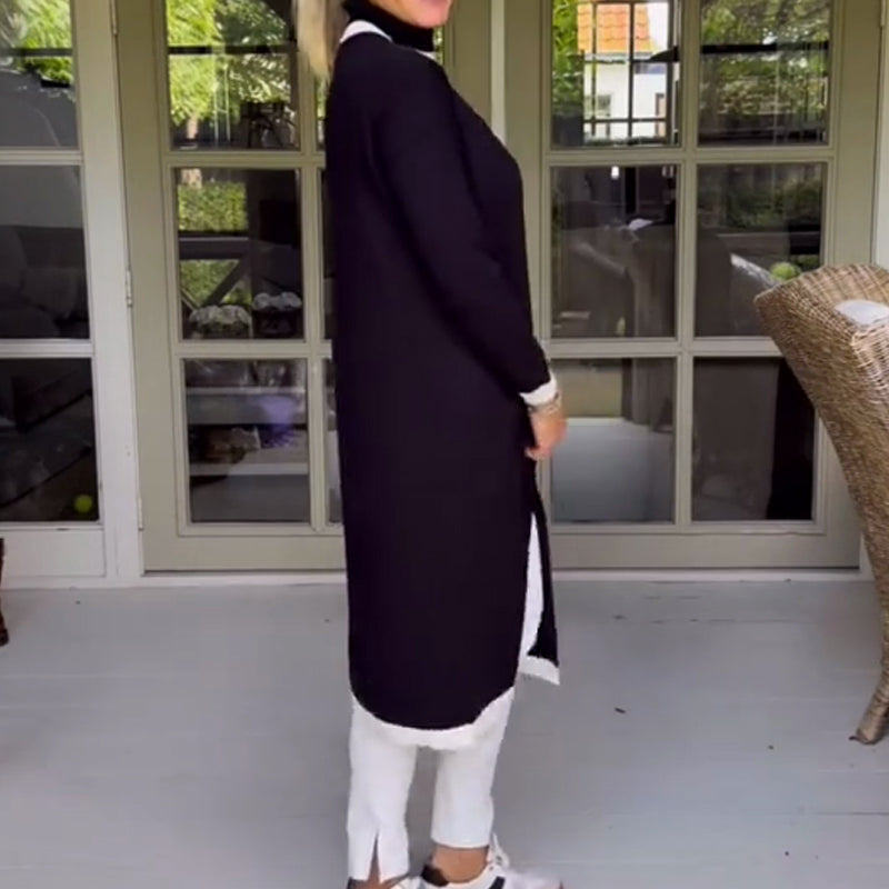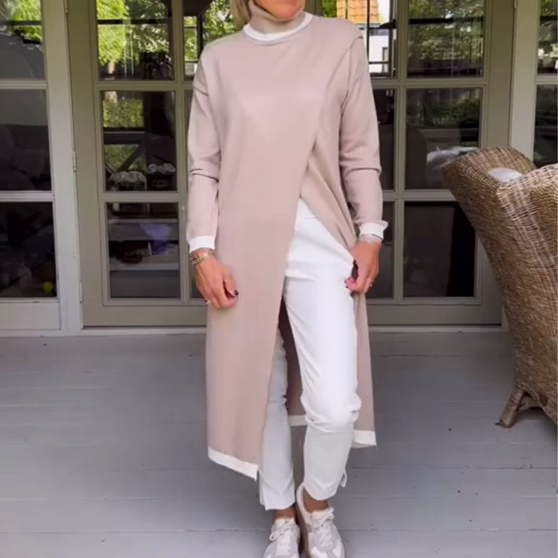 FLATTERING LOOSE FIT: Designed with a relaxed yet structured fit, this sweater top flatters different body shapes while ensuring ease of movement. The elongated hemline and side slit create a slimming effect, enhancing both comfort and elegance in one piece.