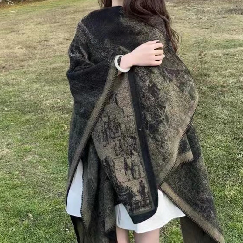 ARTISTIC & AESTHETIC: With hues inspired by natural scenery, this poncho carries a serene, artistic charm. It’s more than just fashion—it's an expression of beauty, giving your wardrobe a creative, painterly essence.
