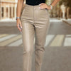 PREMIUM FAUX LEATHER MATERIAL: Crafted from high-quality faux leather, these pants offer a sleek and polished look while maintaining a soft feel. Perfect for all-day wear without sacrificing comfort.