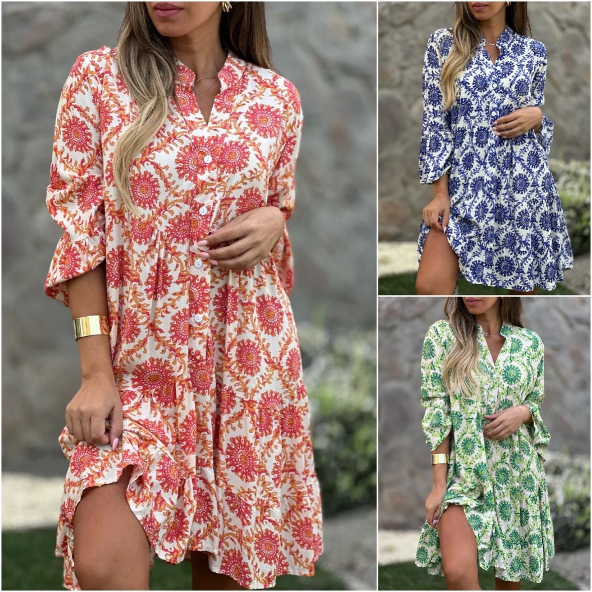 Package Include: 1* Women's Printed Button Down V-Neck Shirt Dress