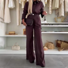Women’s Sheer Button-Down Shirt & Wide-Leg Pants Set