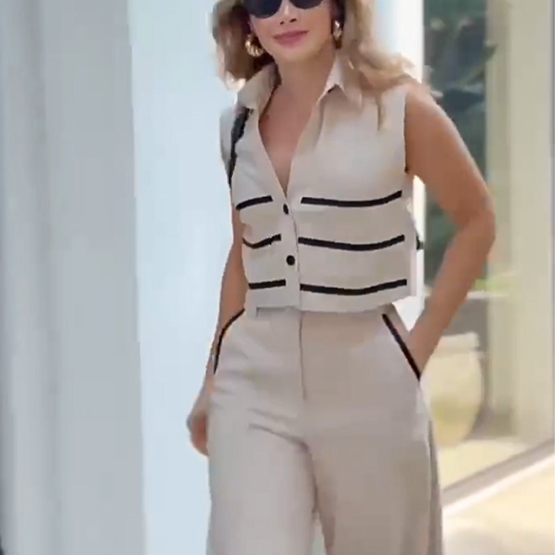 VERSATILE MATCHING SET: Mix-and-match this 2-piece outfit with your wardrobe essentials; includes a trendy sleeveless top and flowy wide-leg pants for effortless, stylish combinations day or night.